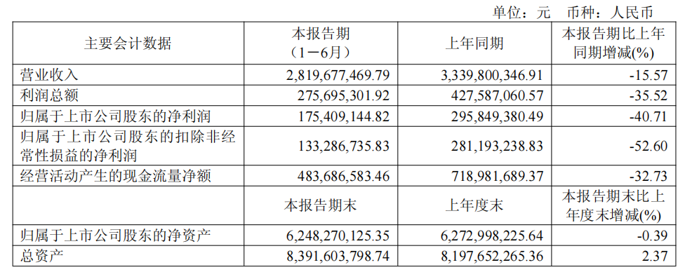 2025年上半年,公司实现营业收入28.2亿元,同比下降15.6%;归母净利润1.75亿元,降幅达40.7%;扣非归母净利润为1.33亿元,同比下滑52.6%。对于营收下滑的原因,绝味食品表示主要是报告期内销量下降。